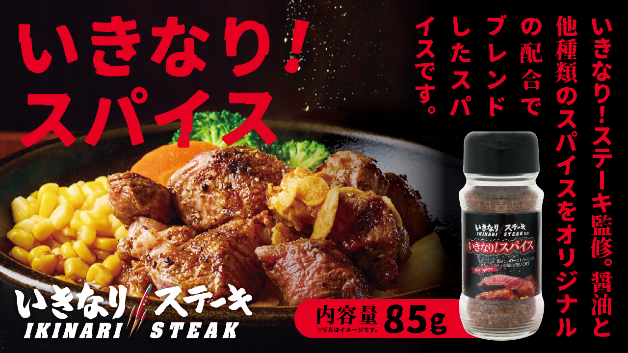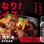 いきなりステーキ監修のスパイスです。醤油と他種類のスパイスをオリジナルの配合でブレンドしました。ローストガーリックを効かせ、香ばしく仕上げたお肉に良く合います。