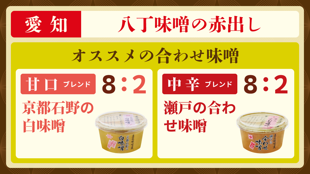 | 原材料名 | 豆みそ(大豆、食塩)(国内製造)、米みそ(大豆、米、食塩)、水あめ/カラメル色素、酒精、調味料(アミノ酸等) |
