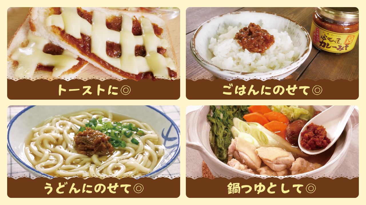みそが隠し味のカレーみそは、ごはんののせて、炒めてドライカレー、パンにつけてカレーパン、カレーうどんに幅広くお使い頂けます。アミノ酸等の旨み調味料は不使用。