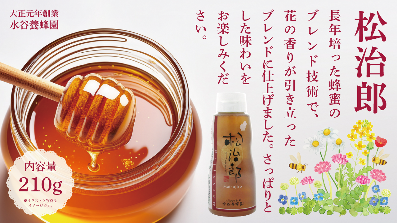 百年を超える老舗蜂蜜屋が考えたオリジナルのはちみつです。さっぱりとした味わいに仕上がっております。ボトルも握りやすい形状にし、蜜切れの良いキャップを使用。