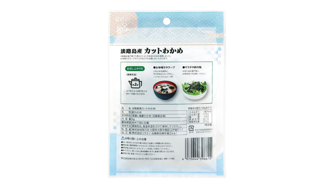 原材料名 | 湯通し塩蔵わかめ(淡路島近海) |