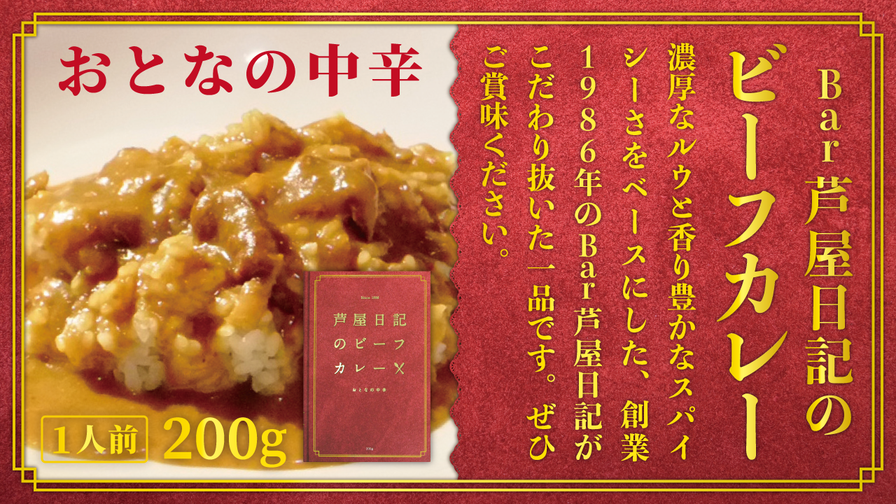 「お客様の思いが綴られる日記帳の様なBarでありたい…」この様な思いで1986年の創業以来、Bar芦屋日記はお客様をお迎えして参りました。日本のBar文化は英国の影響が大きくあり、その考えでフードメニューには英国から伝わった「カレー」にこだわろうと2年半の月日を掛けレシピを作成しました。濃厚なルウと香り豊かなスパイシーさをベースにした、芦屋日記がこだわり抜いた一品があなたの思い出の1ページになりますように…